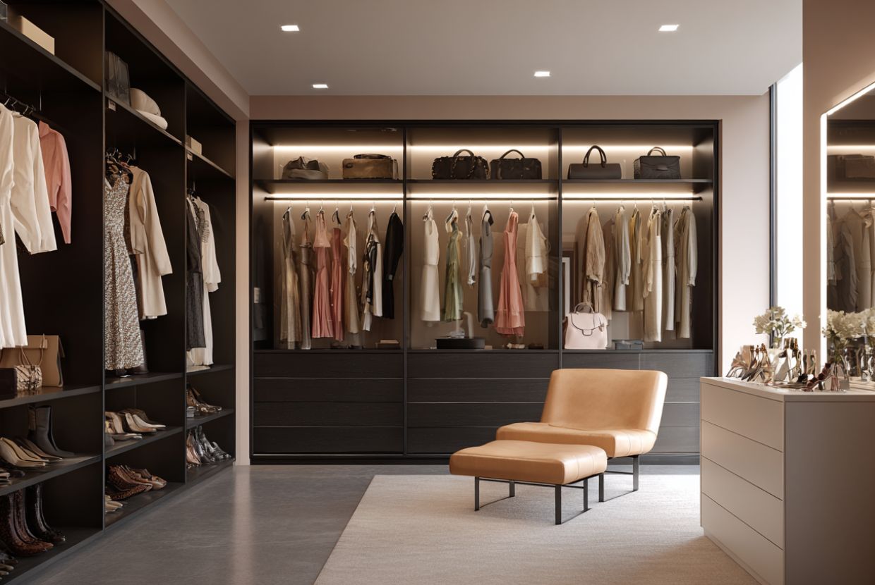 No es casualidad que muchos vestidores de lujo parezcan sacados de una boutique. La iluminación juega un papel fundamental, y se nota desde el primer segundo.